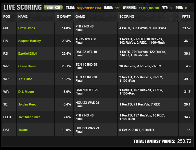 NFL Fantasy Football Millionaire [$1M to 1st]