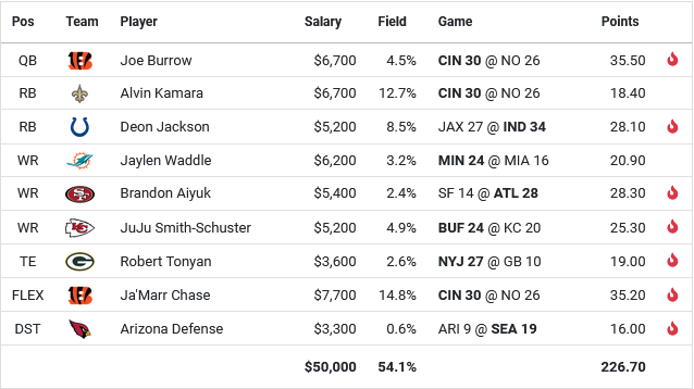 NFL 2022 | Week 6 | Sun, Oct 16, 2022 | BURROW CHASE KAMARA BRINGBACK, ONE OFF RB CHAOS PICK DEON JACKSON, SUB 1 PERCENT ARIZONA DST TOUCHDOWN