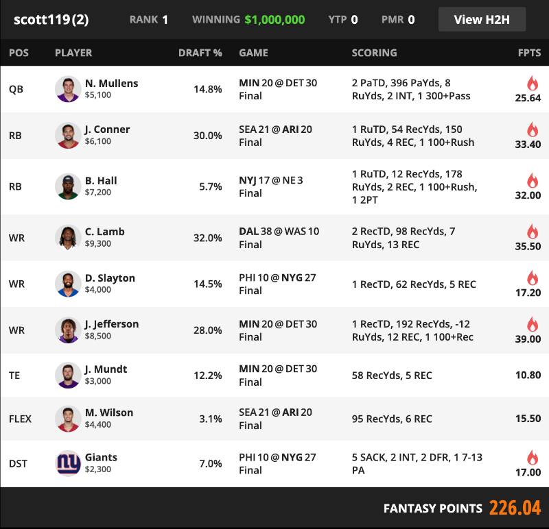 NFL 2023 | Week 18 | Sun, Jan 07, 2024 | MULLENS DOUBLE WITH JUSTIN JEFFERSON AND JOHNNY MUNDT, CONNER WITH MICHAEL WILSON, GIANTS DST WITH DARIUS SLAYTON