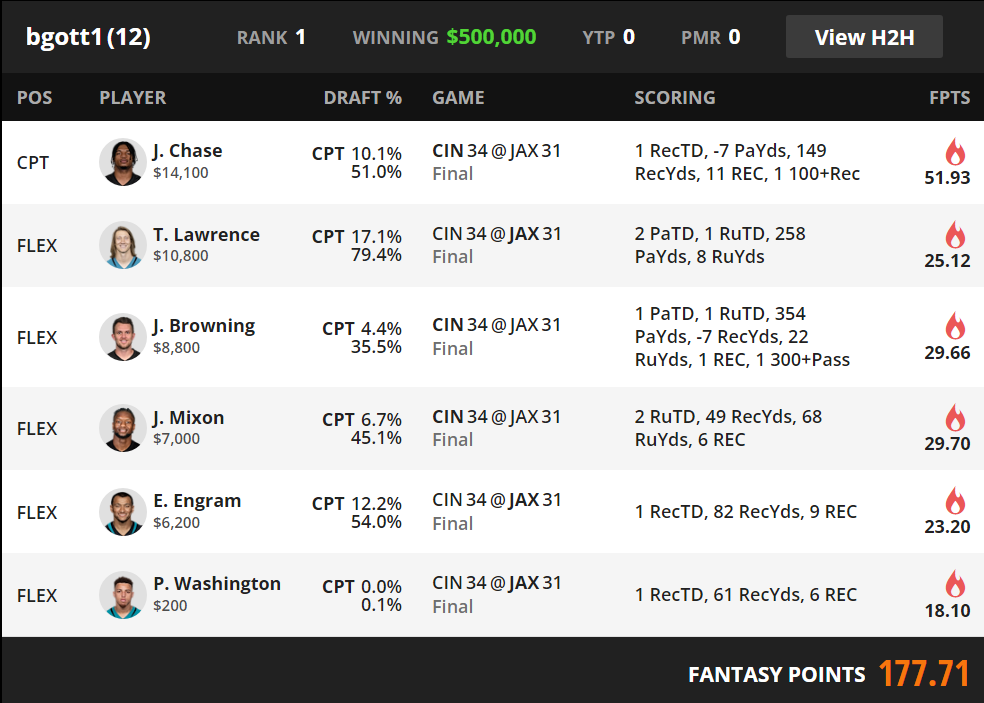 Winning lineup