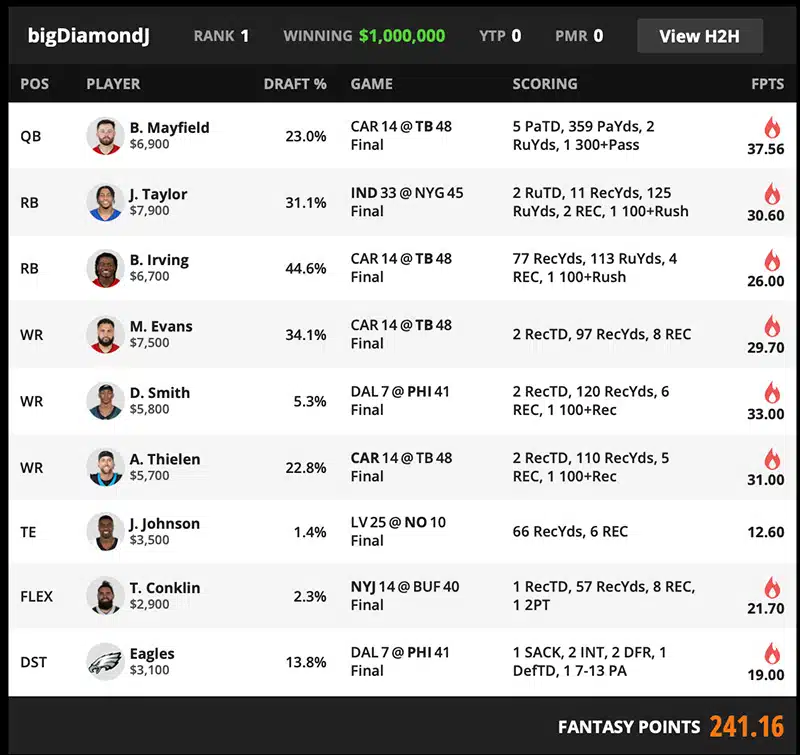 NFL $3.5M Fantasy Football Millionaire [$1M to 1st]