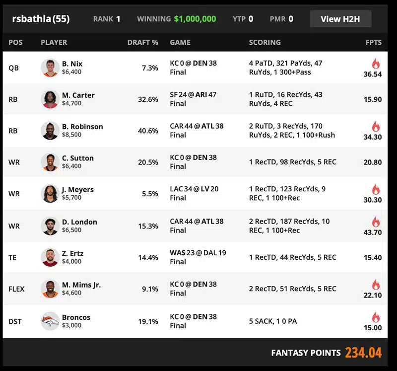 | DST | Broncos DEN DST | 19.1% | 3000 | 15 |