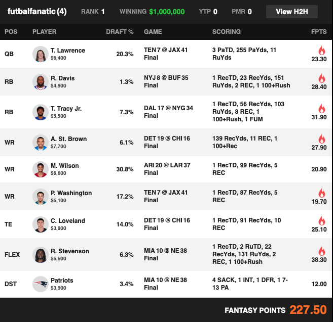 NFL $3.5M Fantasy Football Millionaire [$1M to 1st]